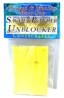 Unblocker sachet powder is a versatile magical product. Traditionally used to dress important paperwork or petitions, sprinkling on ground where the target will walk over, as a magical carpet sprinkler, container spells, mojo bags, or simply sprinkle on your altar. Safe to use on skin as a magical scented body powder, add to baths, and can be used to dress candle after oil is added. Unblocker powder is traditionally used to help you unblock and remove unwanted energies or obstacles that stand in the way. 1/2oz.
